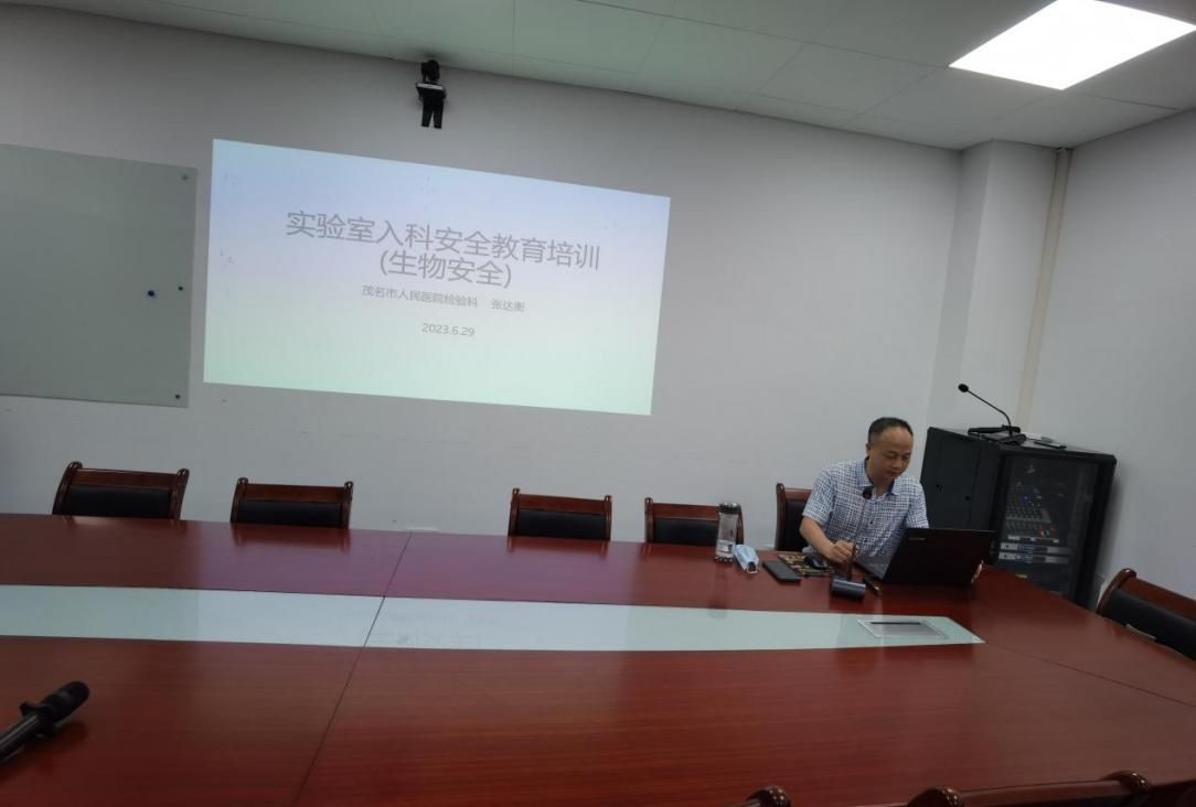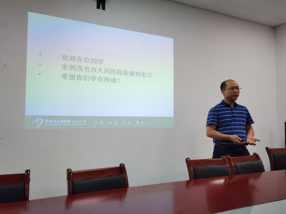 为规范化管理实习生,提高教学水平,6月29日下午,茂名市人民医院检验科组织开展了新一届实习生入科教育,检验科主任陈宇锋主持并组织培训。