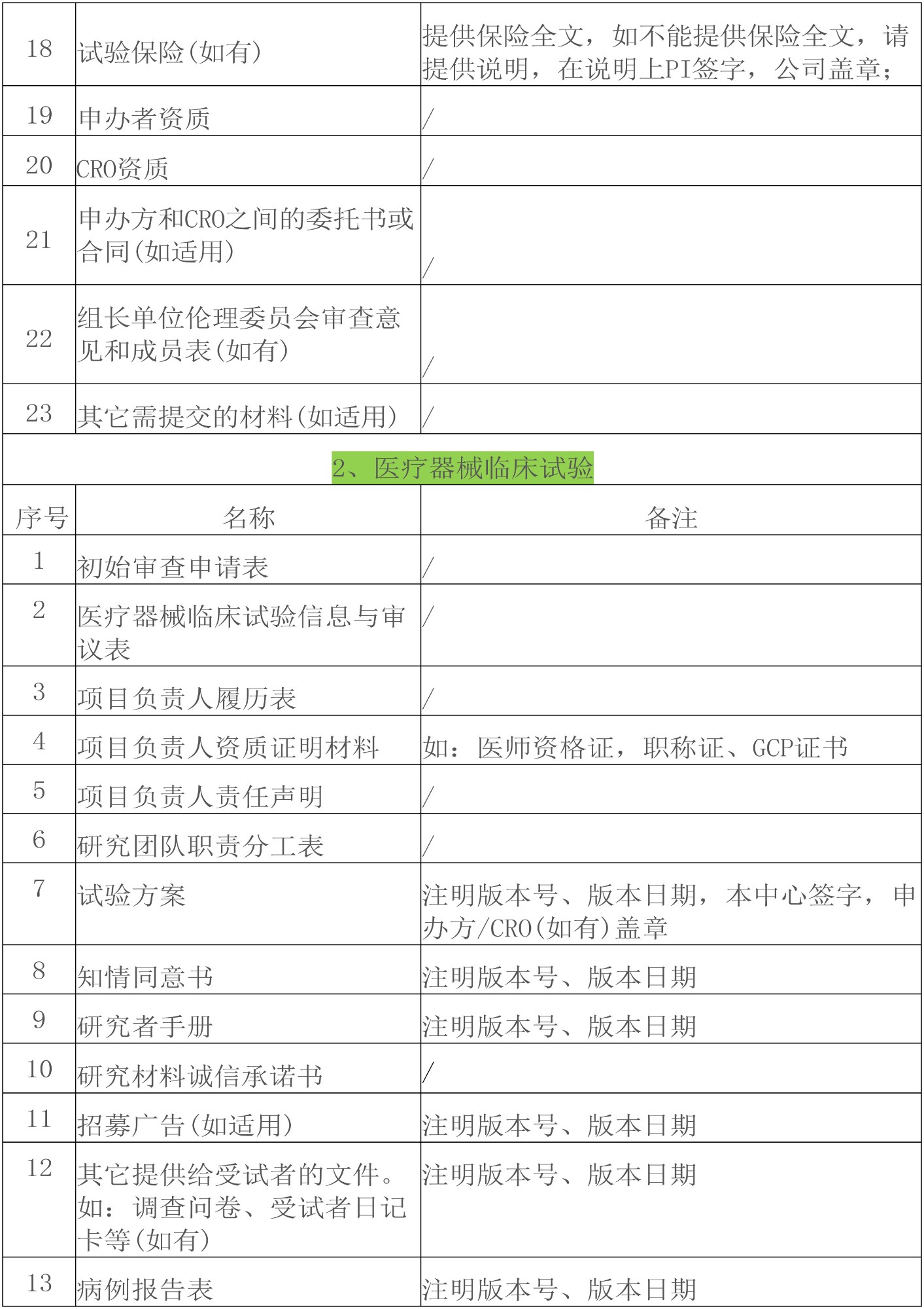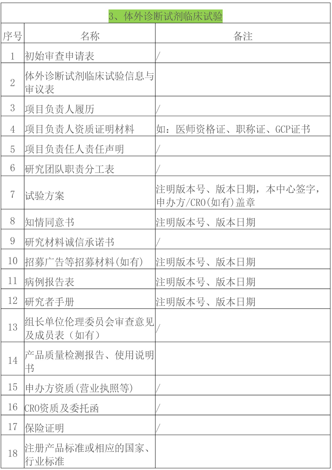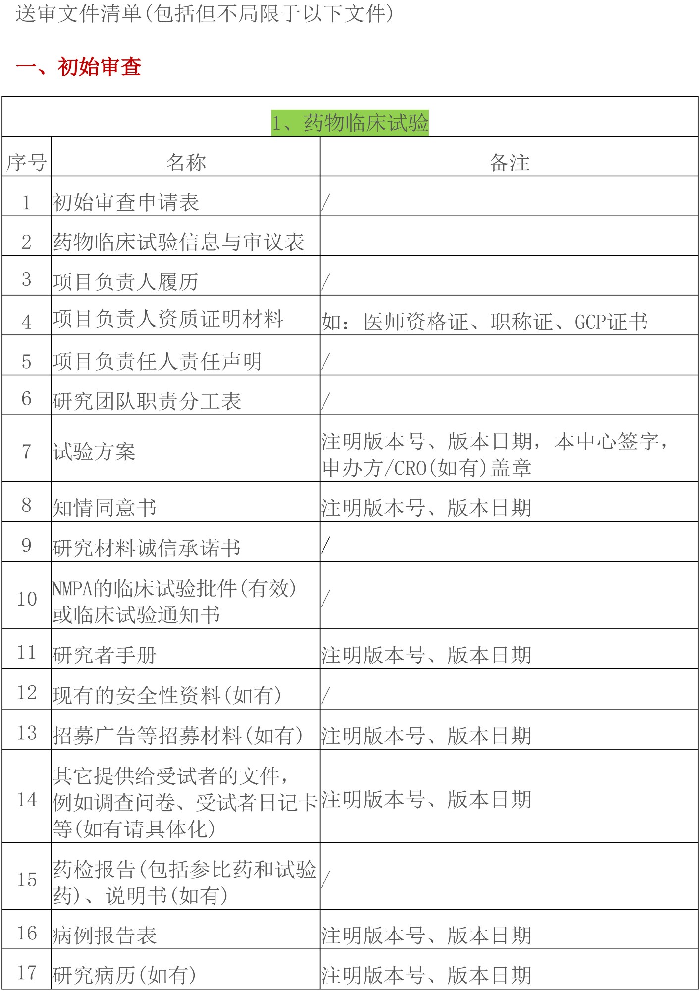 GCP项目伦理文件送审清单