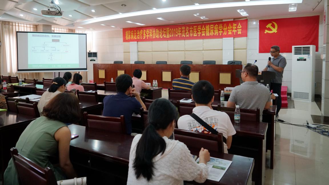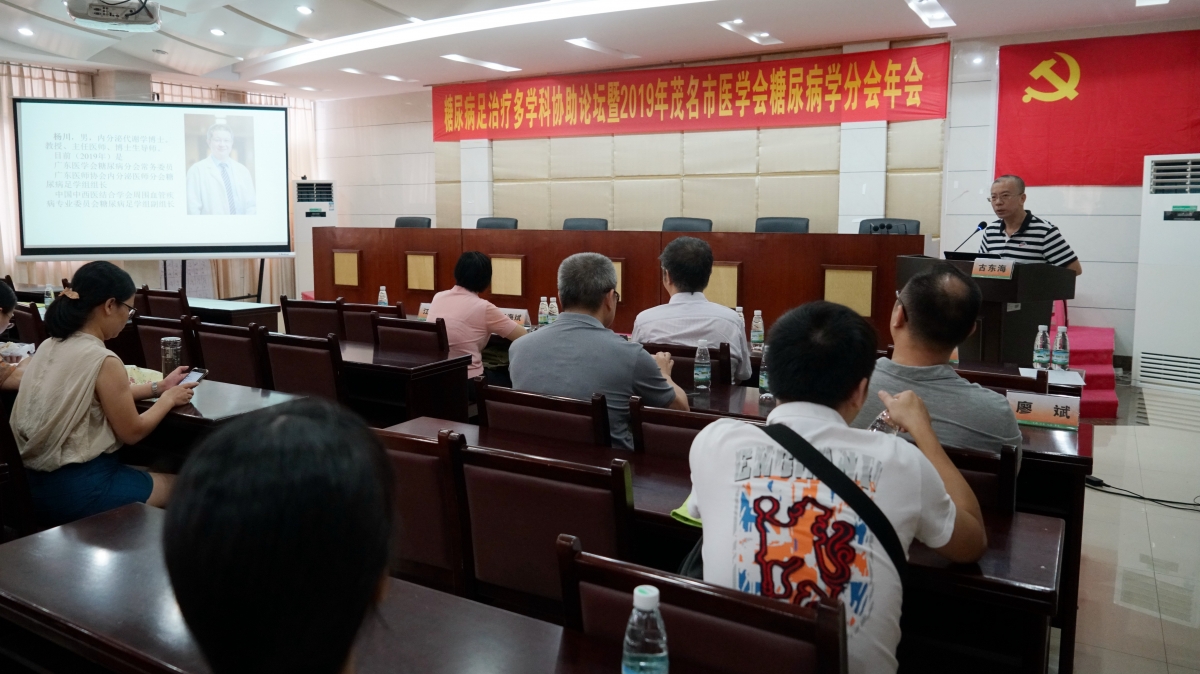 7月27日上午,为加强内分泌内科与其他学科之间的联系,促进学科发展,更好地为群众服务,我院举办糖尿病足治疗多学科协作论坛暨茂名市医学会糖尿病学分会2019年会,茂名地区各医院近100名医疗同道参加了会议。会议由我院内分泌内科主任古东海主持。