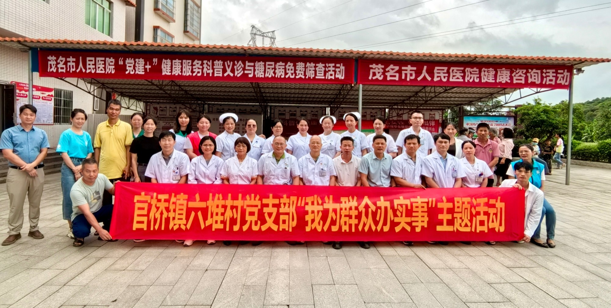为深入学习宣传贯彻习近平新时代中国特色社会主义思想,全面贯彻落实党的二十大精神,推进优质医疗资源下沉基层,让老百姓在家门口就能享受到大医院的诊疗服务,5月11日上午,茂名市人民医院内科第八党支部联合内科第二党支部及药剂科党支部等党员医护人员来到化州市官桥镇六堆村开展科普义诊与糖尿病筛查活动。