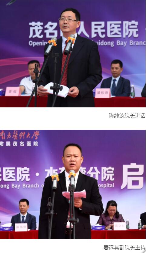 黄立红局长表示,本次水东湾分院的启用,对补充茂名市医疗资源不足起到很好的作用,有助于进一步提升茂名医疗核心竞争力。茂名市人民医院要充分发挥引领示范作用,带动全市的医疗机构,不断提升医疗服务能力,为茂名人民健康服务。