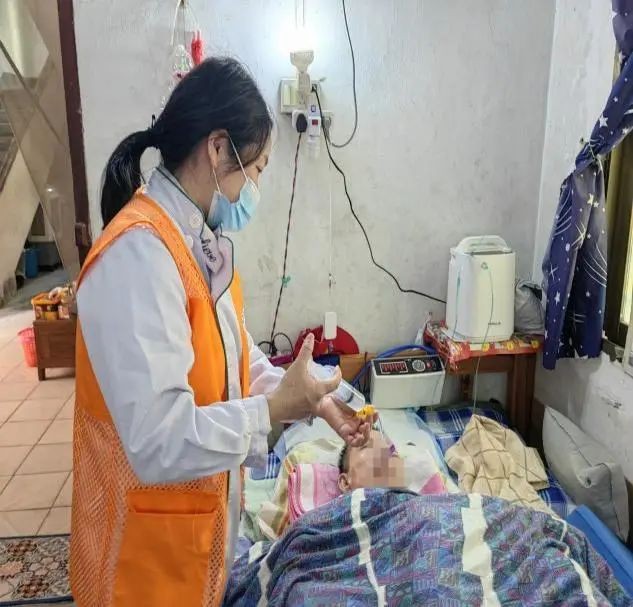 “这么快就到了!快进来快进来,不用换鞋......实在是太感谢你们......”来到梁阿姨家中,开门的是她的丈夫,他一面向张艺明致谢、告知梁阿姨近期状况,并将她引至梁阿姨床边。