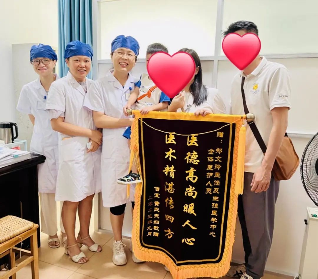 近日,一对夫妇带着3岁萌娃为茂名市人民医院生殖医学中心的医务人员送来锦旗,整个诊室充满了幸福与感动。