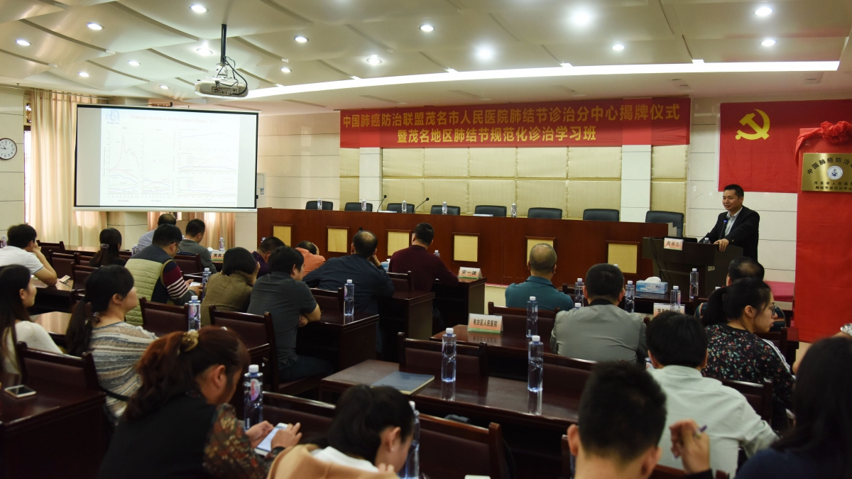 2月22日,中国肺癌防治联盟我院肺结节诊治分中心挂牌仪式在我院举行。中国肺癌防治联盟主席、亚太国家肺结节诊治指南制定者、上海市呼吸病研究所所长、复旦大学附属中山医院白春学教授,茂名市肿瘤防治联盟主席、我院副院长麦远其等参加揭牌启动仪式。同时开展了茂名地区肺结节规范化诊治学习班,白春学教授与来自广州呼吸健康研究院周承志教授及我院的专家进行专题讲座授课活动。