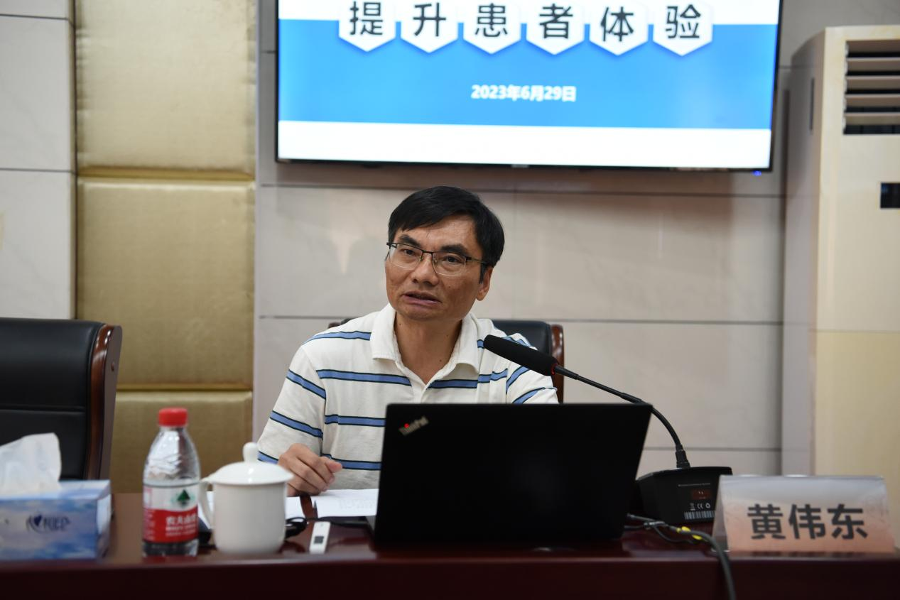 副局长黄伟东在授课现场上,介绍了国家卫生健康委的重要指示精神,并提及了一系列文件的制定,旨在推动护理服务的改善和提升。阐述了护理人员学习法律法规和履行职责的重要性。随后他指出,良好的就医体验和愉悦的心情有助于患者的健康恢复,同时也为医院带来良好的口碑和丰富的资源,对护理人员而言则意味着更多的机会和收获,并通过案例分享展示了提高护理服务质量的实际效果。