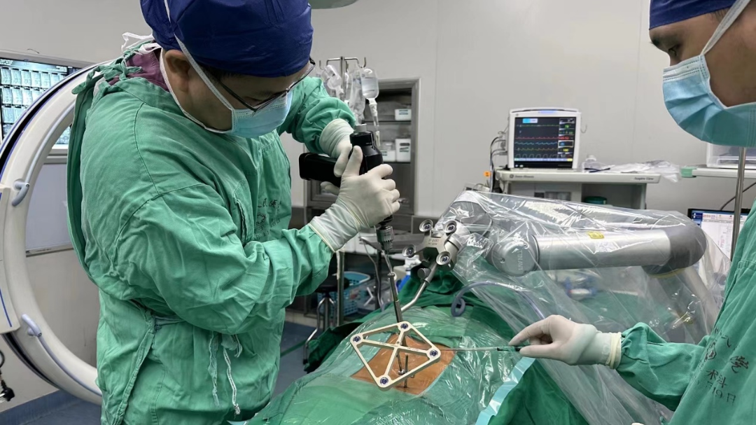 在做好充分准备后,手术如期进行。专家团队熟练、灵活地运用天玑骨科机器人,精准定位骨折部位,通过微小的切口完成了该部位复原及固定,手术过程顺利、成功,一个小时便完成了。