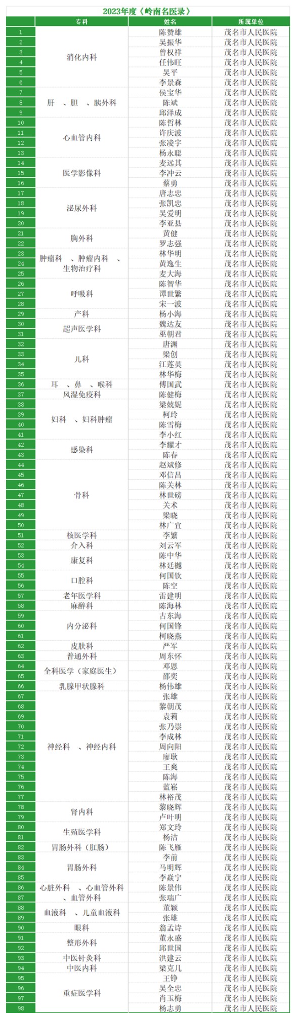 2023年度《岭南名医录》出炉啦!茂名市人民医院38个学科、98名专家上榜!