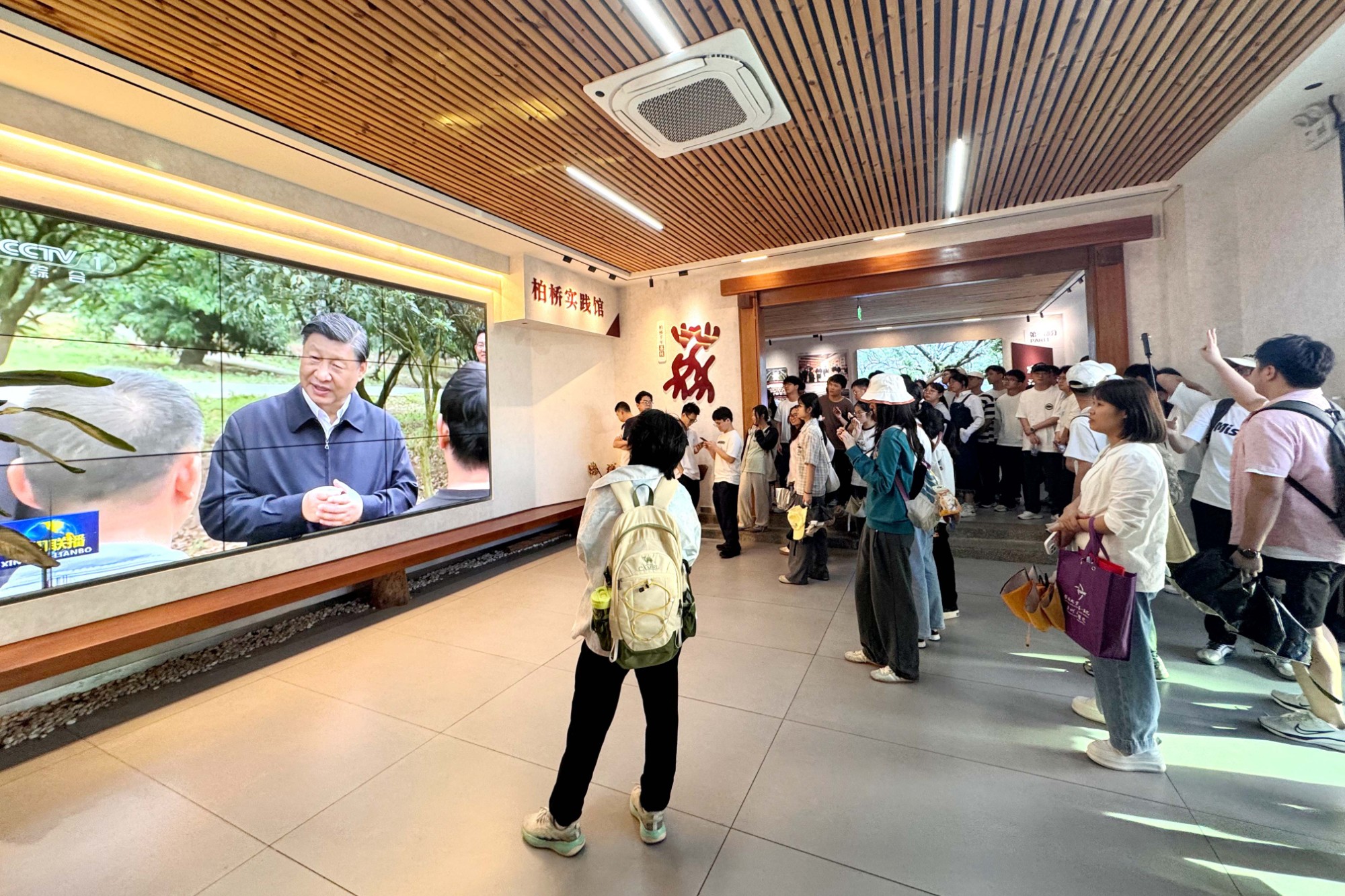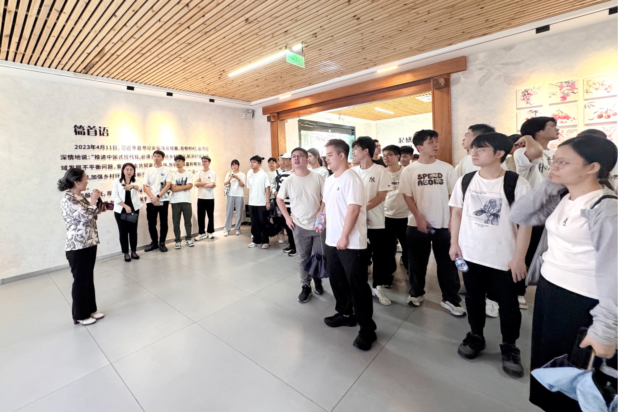 结束理论学习后,学子们沿总书记考察足迹走进柏桥村。在柏桥讲堂、实践馆参观,直观感受柏桥村从单一种植到“农业+文旅”的转型,体会特色产业赋能乡村振兴的强劲动力。