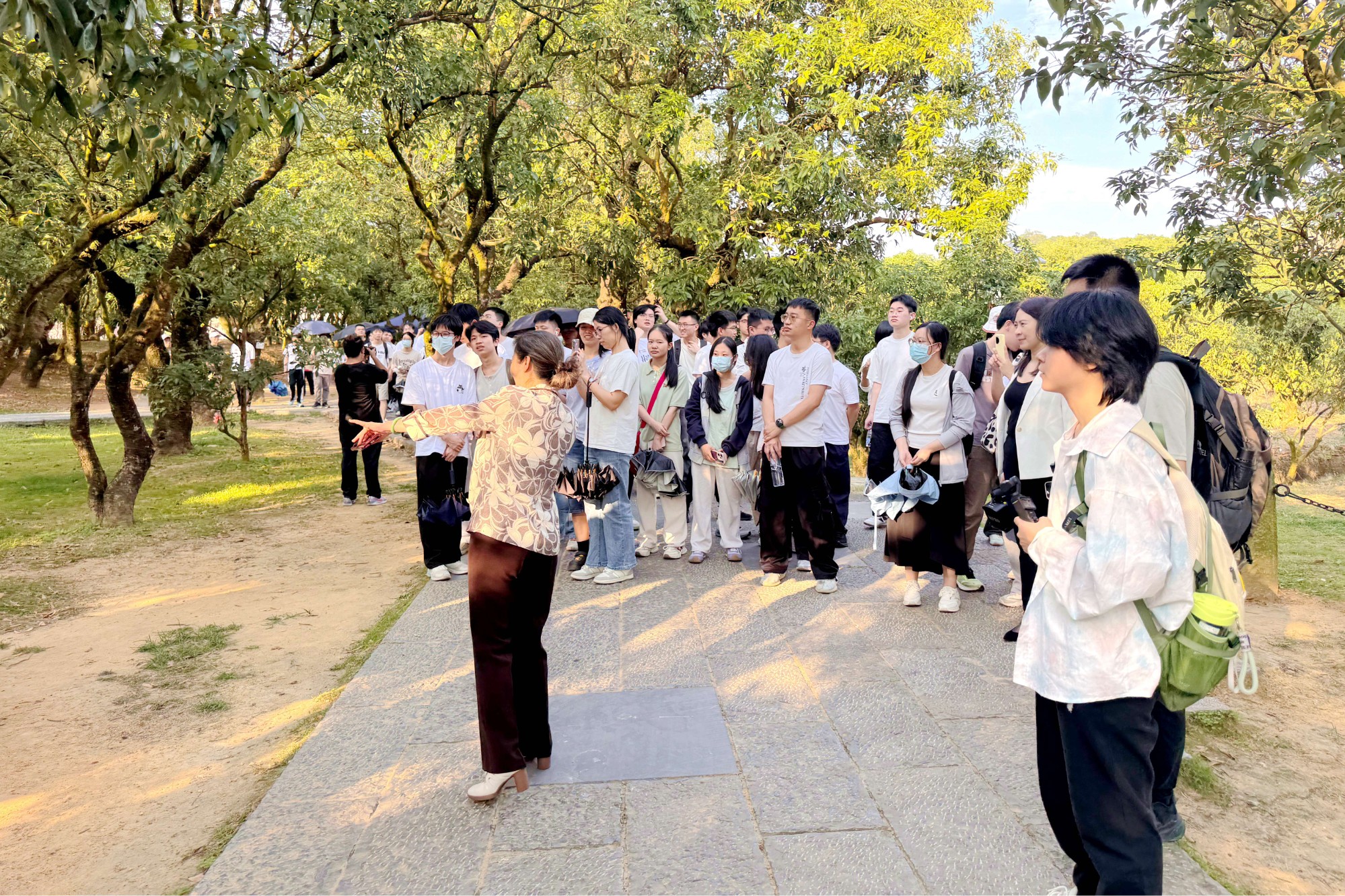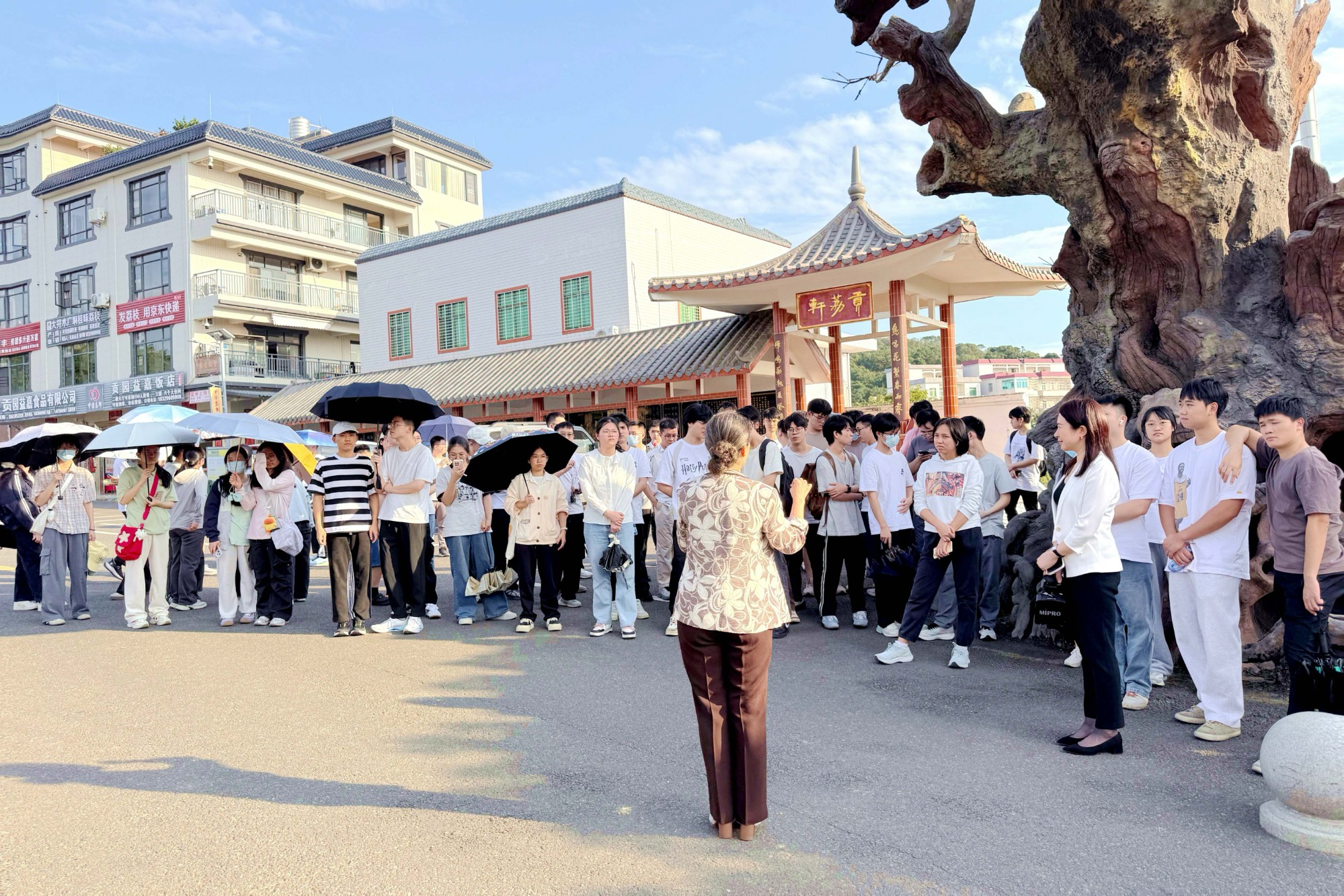 在贡园古荔枝树下,百年树龄的果树仍枝繁叶茂,聆听赵教授依托古树发展研学旅游、带动增收的故事,深刻理解“绿水青山就是金山银山”的内涵,牢记总书记嘱托,积极推动特色资源向特色产业延展。
