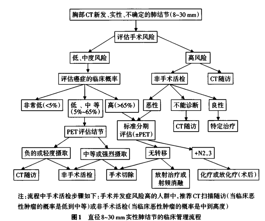 如果是8~30 mm的肺结节,就建议找专科医生根据实际情况来评估临床恶性概率等,需要综合判断如何进一步处理。
