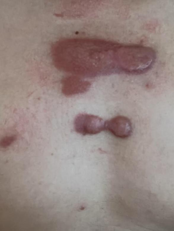 小董(化名)胸部毛囊炎愈合后皮肤疤痕逐渐增大形成瘢痕疙瘩,红肿硬结、刺痒疼痛,夏季穿衣都受到了影响,尝试传统打针治疗但效果并不持久,她为此困扰不已。