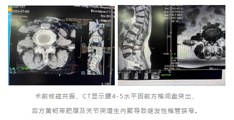 经过充分的术前讨论及围手术期多学科会诊(MDT)评估后,手术如期顺利施行。由赵斌修主任医师主刀、黄坚辉副主任医师协助,术中,通过仅2cm的小切口,成功切除了压迫神经脊髓的增生肥厚的黄韧带/部分椎板和前方的突出椎间盘,彻底解除了脊髓神经根的压迫。由于不破坏关节突关节,不影响脊柱稳定性,不必额外植入椎弓根钉棒行内固定。