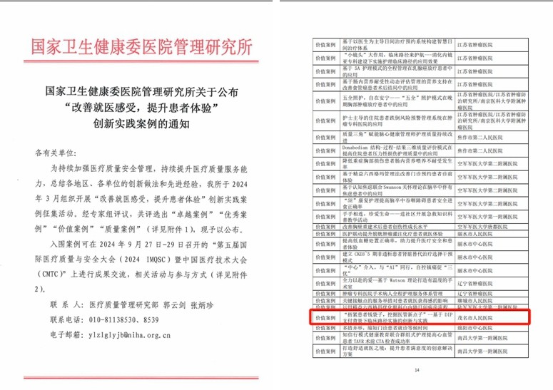全国荣誉!茂医“改善就医感受,提升患者体验”创新实践案例获奖