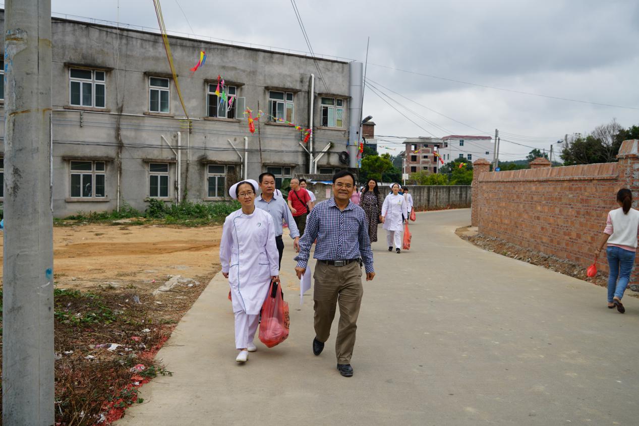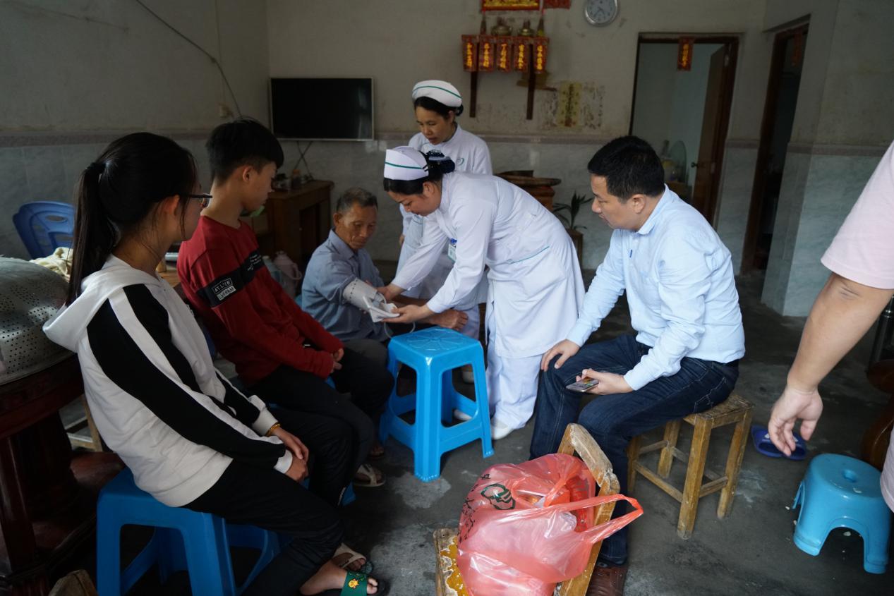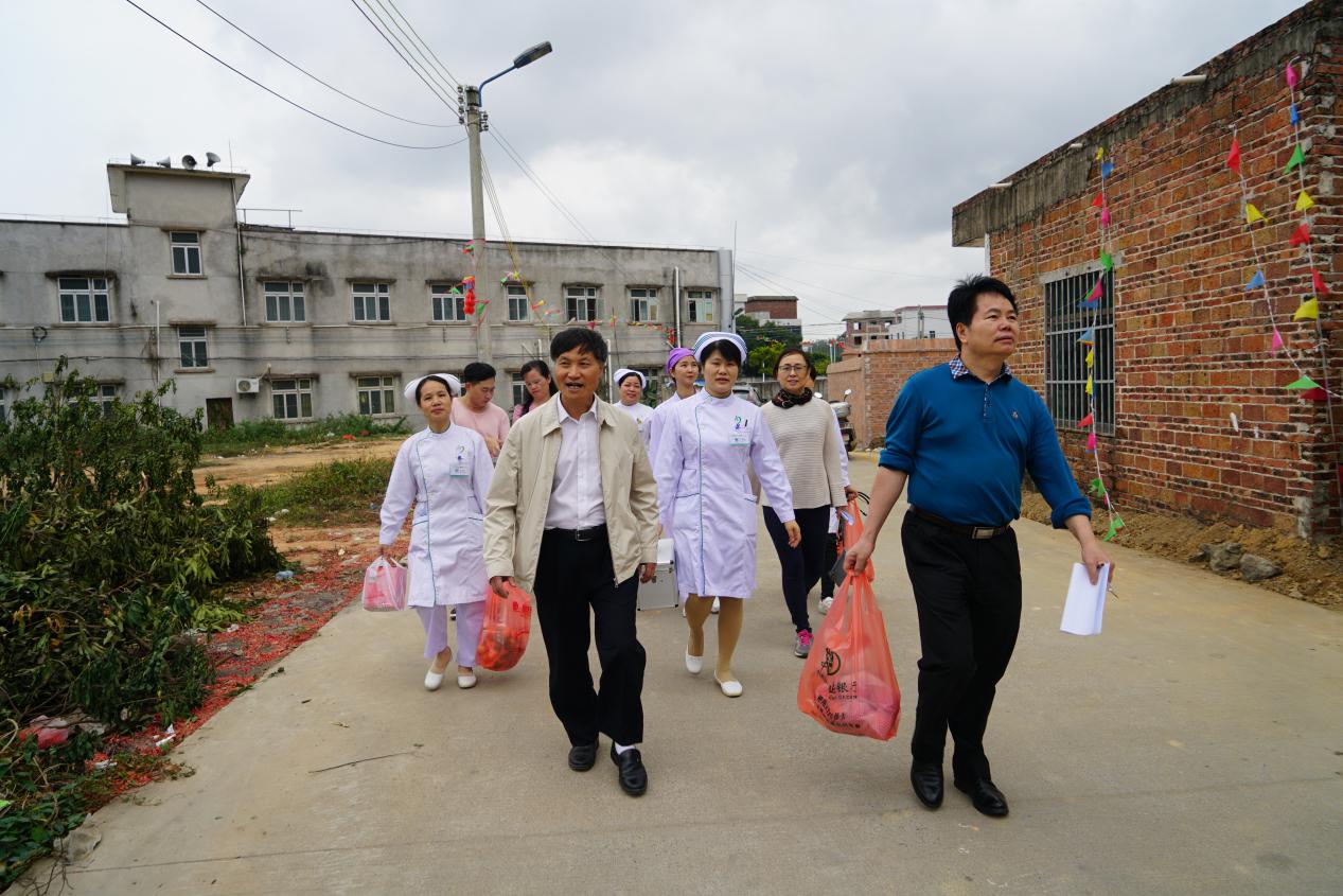 2月17日下午,我院党委书记张锋华带队到化州市鉴江开发区百室堂村开展慰问和义诊活动,同行的还有党委副书记柯木祥、副院长江波、副院长麦远其、总会计师黄勇红,以及结对帮扶贫困户的中层干部和医生护士。我院领导干部深入了解贫困户的生活状况、产业发展和收入情况,询问他们生活上存在的困难,为他们排忧解难,并送上慰问品。同时,医生护士入户义诊,通过测脉搏、量血压、开药、健康宣教等途径为贫困户送上健康关怀。