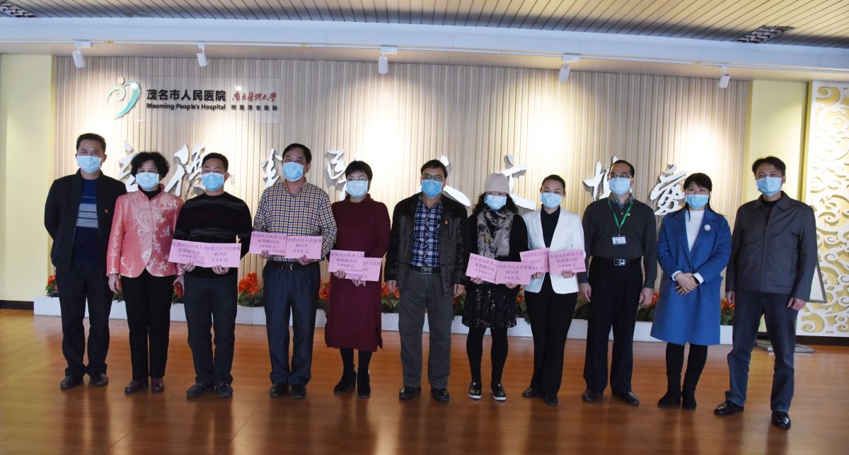 在新型冠状病毒感染的肺炎疫情肆虐的关键时刻,我院7名医护人员积极响应医院党委的号召,迎难北上驰援武汉,用实际行动践行医者责任、扛起医者担当,弘扬了好心茂名精神。今日下午,我院党委副书记柯木祥及相关科室领导干部带着市委、市政府和医院党委的关怀、支持与问候,深切慰问了我院支援湖北抗疫医疗队队员及家属,并为家属们发放了茂名市委组织部以及医院的慰问金、慰问信。