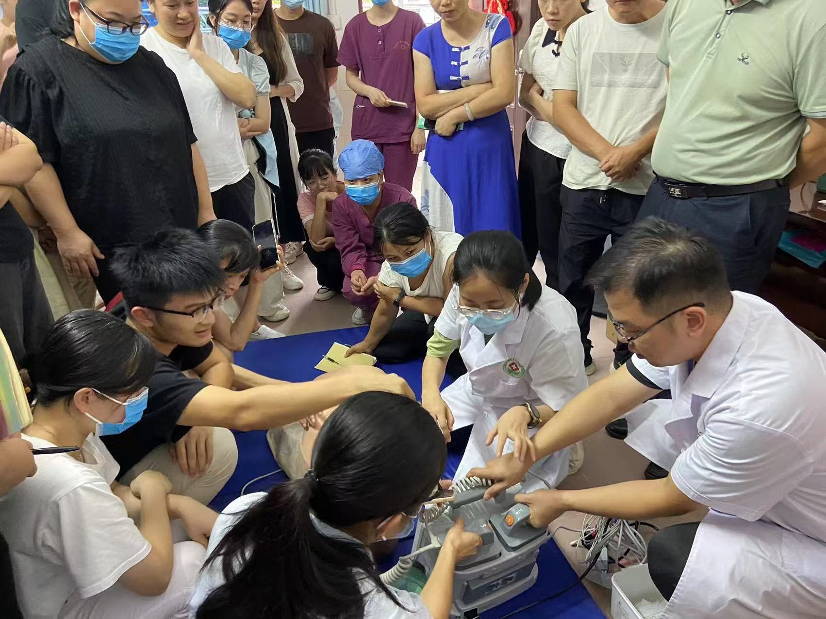 近日,茂名市人民医院“百千万工程”帮扶工作队在信宜市镇隆镇卫生院开展了心肺复苏相关急救知识专题培训,以提高基层医务人员的急救水平,强化基层医院急诊急救能力建设,全院医护人员和镇隆镇辖区全体乡村医生近100人分批参加了培训。