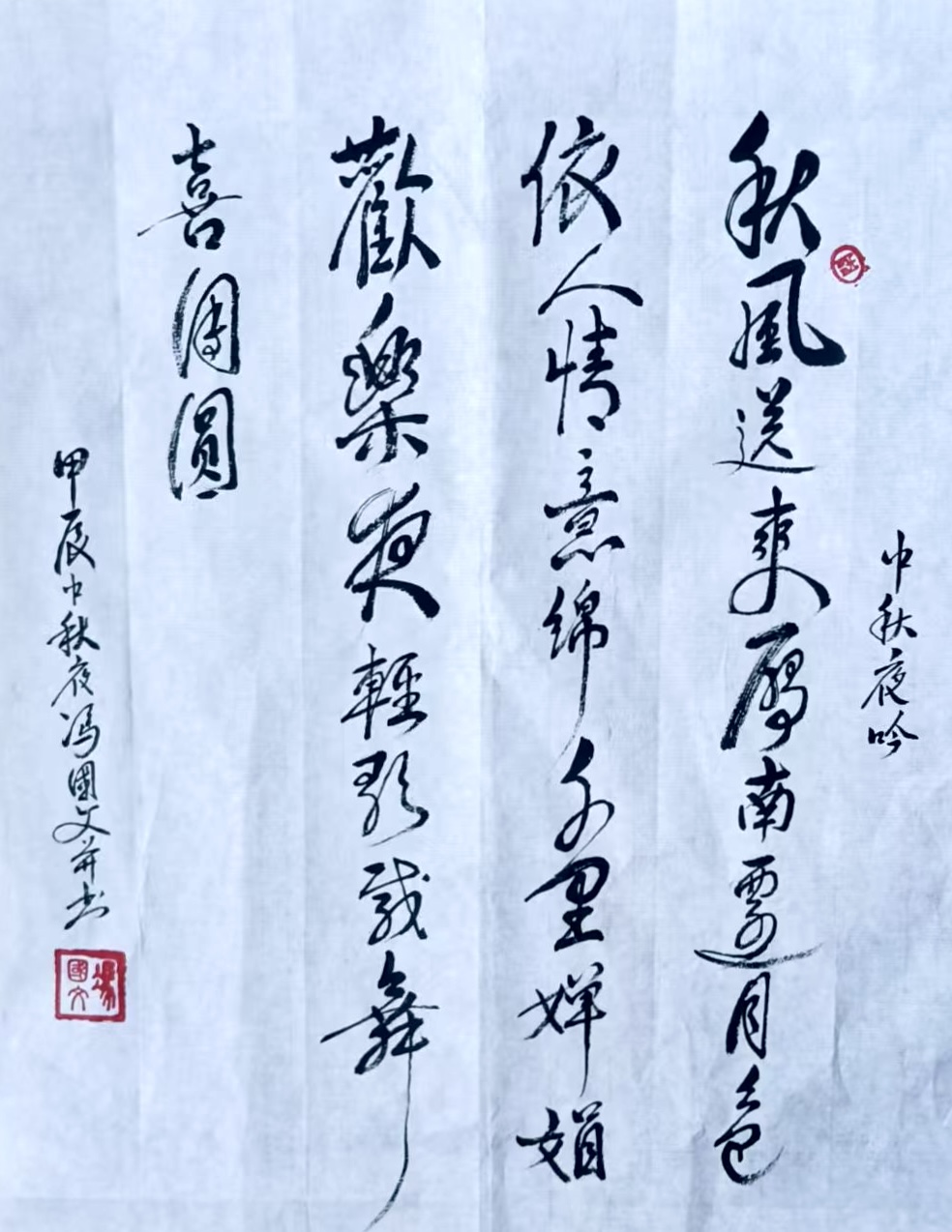 中秋夜吟 发布时间:2024-09-17 22:40 本文来源: 全栏目管理员 分享到: 中秋夜吟冯国文秋风送爽雁南迁,月色依人情意绵。千里婵娟欢乐夜,轻歌载舞喜团圆。(2024年9月17日) 扫一扫 手机端浏览