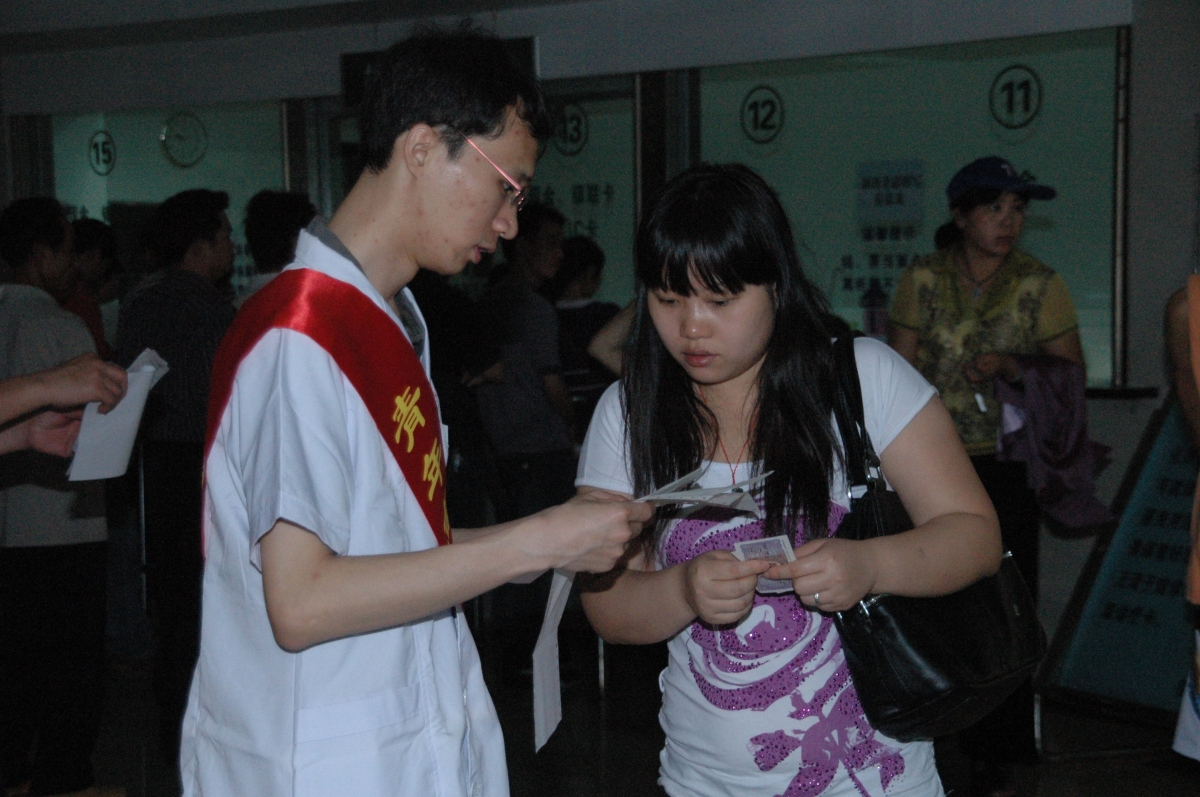 青年志愿者为患者讲解化验结果