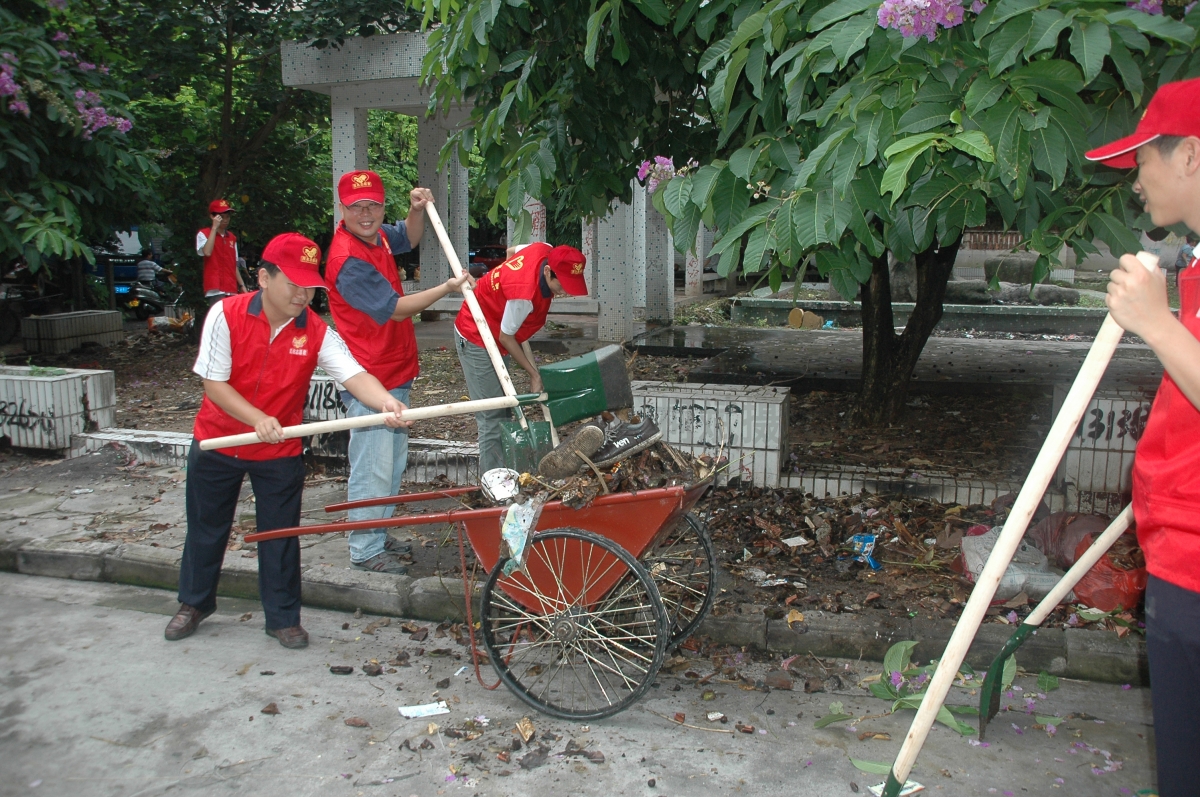我院志愿者不怕苦、不怕累,对责任清洁区的卫生死角进行重点清理。