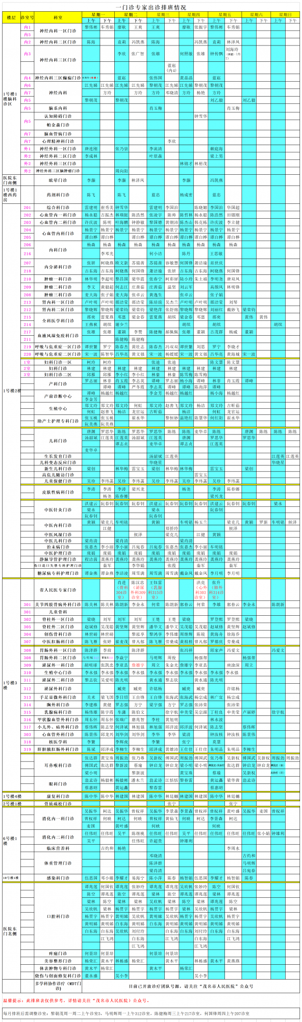 当天专家出诊时间部分可能存在调整,具体以微信公众号“茂名市人民医院”专家出诊时间为准。