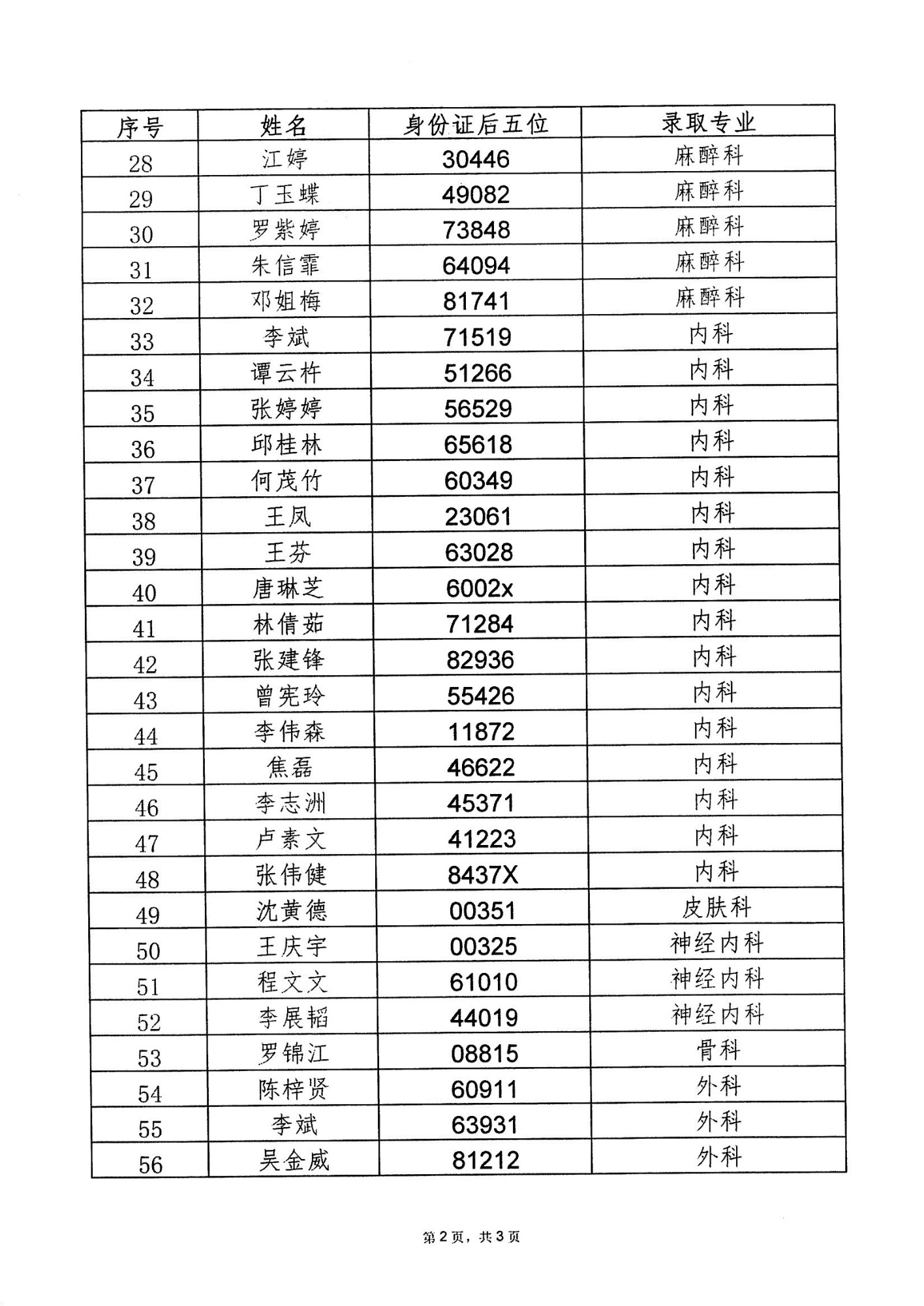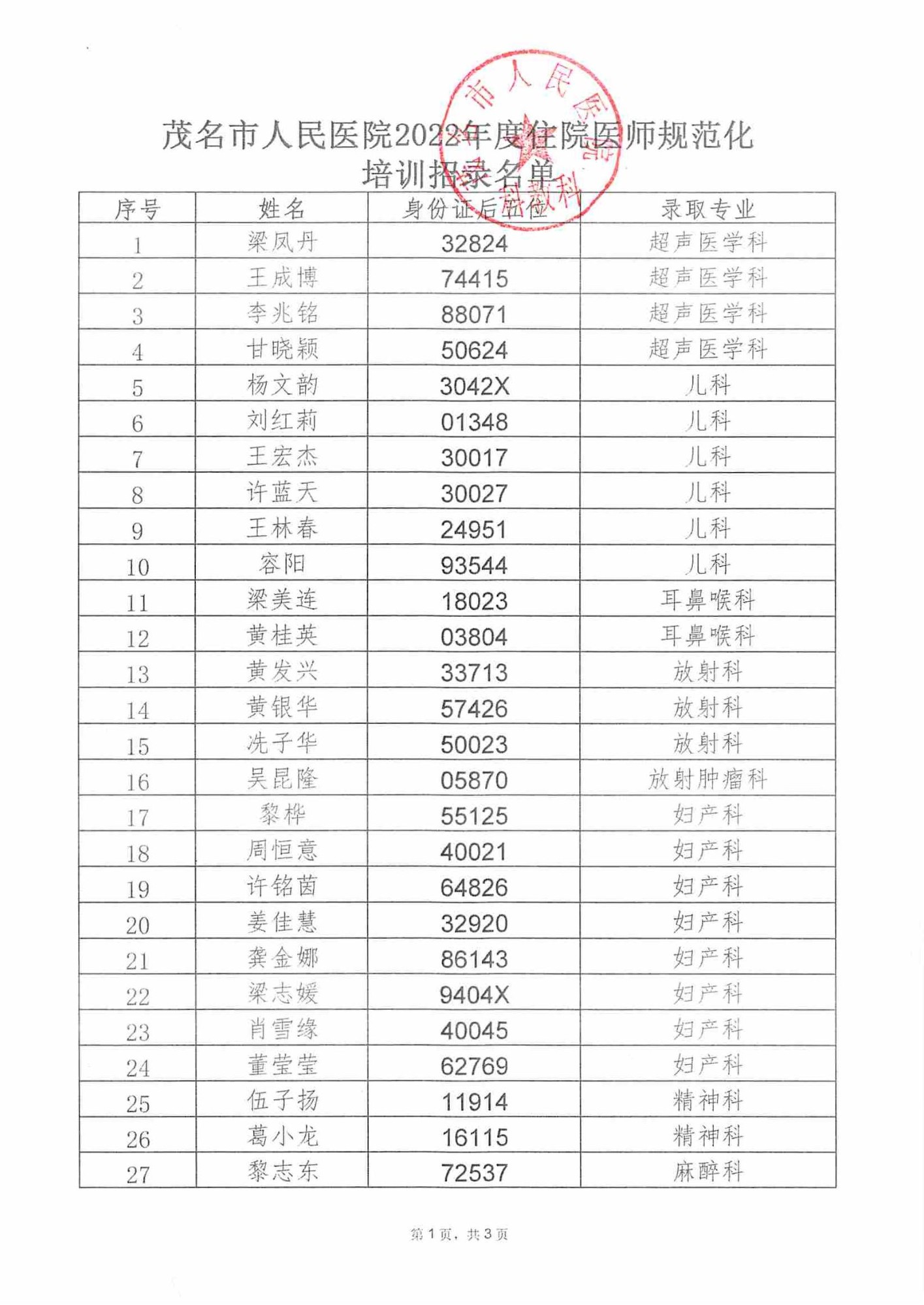 2022年茂名市人民医院住院医师规范化培训招录(第一批)经考核,现将录取名单公布如下: