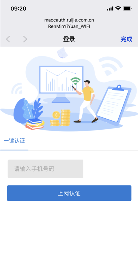 2.等待自动跳转到认证页面后,在页面上输入手机号进行认证即可成功登陆,实现免费高速上网。